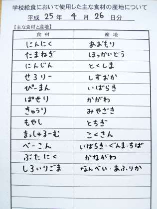 4月26日の給食食材産地