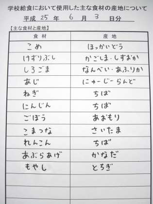 6月3日の給食食材産地