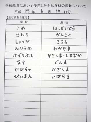 6月10日の給食食材産地