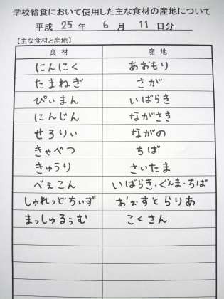 6月11日の給食食材産地