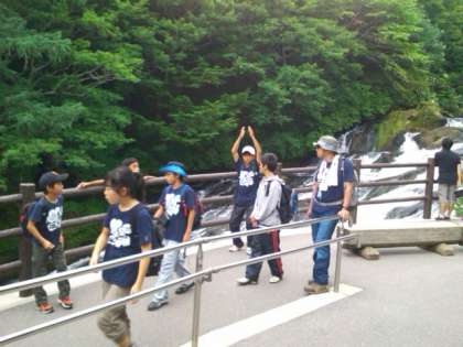 龍頭の滝に到着しました。岩肌を伝う水の流れです。
