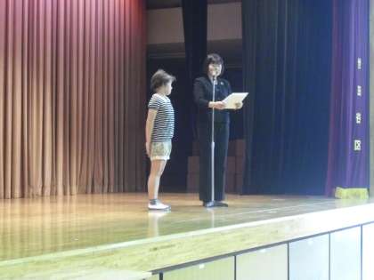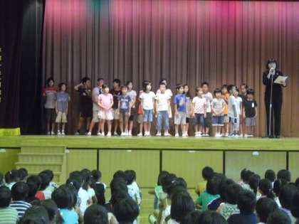 水泳大会でよい成績を上げた児童の表彰。