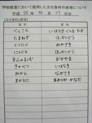 10月17日の給食食材産地