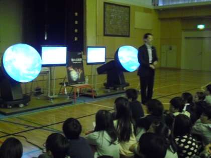 子どもたちは、デジタル地球儀を実際にさわってみて、地球を大切に思う気持ちが深まったようでした。