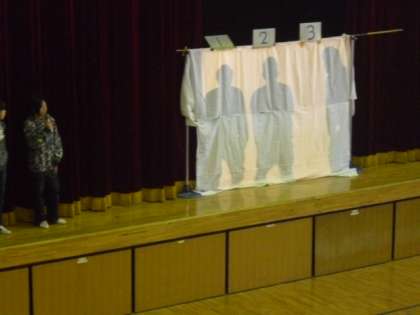 いつも見ている先生や主事さんですが、シルエットだけになると分からないものです。