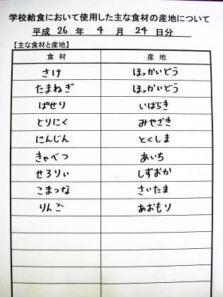 4月24日の給食食材産地