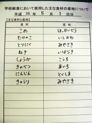 5月1日の給食食材産地