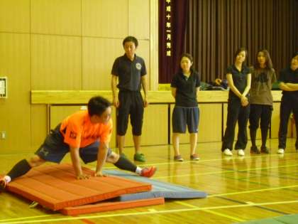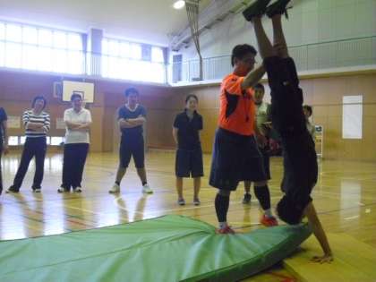 7日は、用賀小学校主幹教諭の中村一裕先生を講師としてお招きして実技研修会を行いました。前半は、「ゲーム」、後半は「器械運動」について勉強しました。