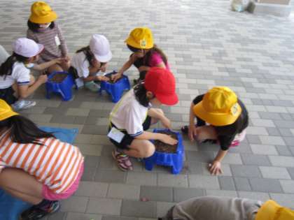 生活科の授業で、2年生からあさがおの種のまき方を教えてもらいました。