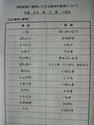 7月1日の給食の主な産地です。