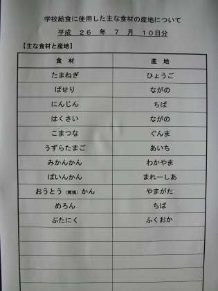 7月10日の給食食材産地
