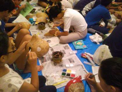 ふくべ細工体験学習です。ゆうがおの実を使います。