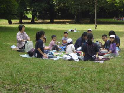 公園では、ドロケイをしたり、だるまさんがころんだをしたりして遊んだ後、一緒にお弁当を食べました。