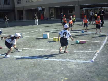 子どもたちは、一生懸命ダンボールの的をねらっていました。