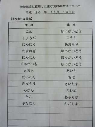 11月14日の給食食材産地