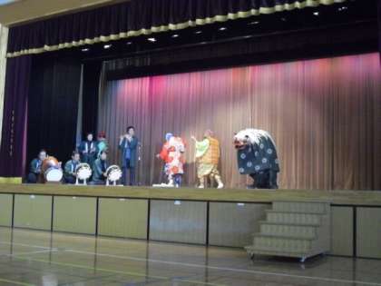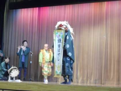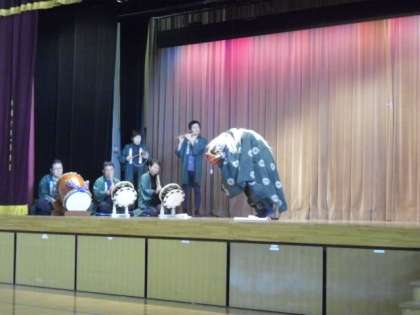 「鎌田囃子保存会」の方々をお招きして、地元に残る伝統文化である鎌田囃子を見せていただきました。