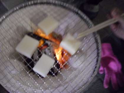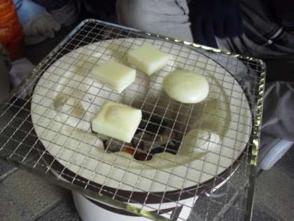 社会科の学習で、七輪でおもちを焼く体験をしました。