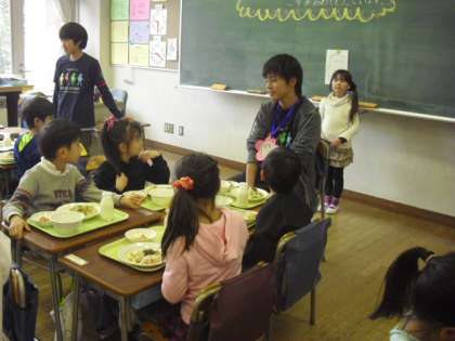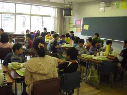送る会の後は、各教室に6年生を招き、お別れ給食です。