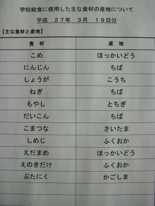 3月19日の給食食材産地
