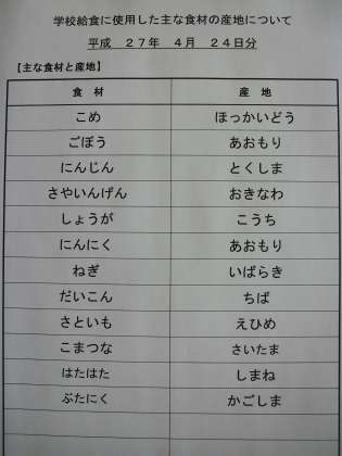 4月24日の給食食材産地
