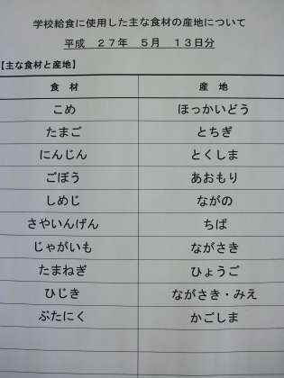 5月13日の給食食材産地