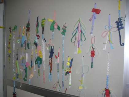 1番右の写真は、2年生の図工「ゆらゆらウキウキ」の作品です。