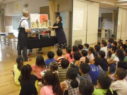 鎌田図書館の方々がいらして、2年生の児童にお話し会をしてくださいました。
