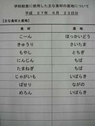 6月23日の給食食材産地