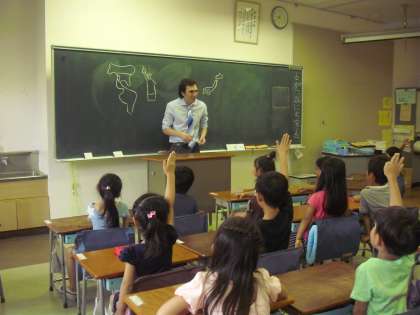 本日、1年生がALTと1時間ずつ英語の学習をしました。