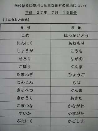 7月15日の給食食材産地