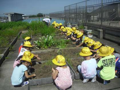 本日、農学博士の木村正典先生をお迎えし、1年生が屋上で野菜の種まきをしました。