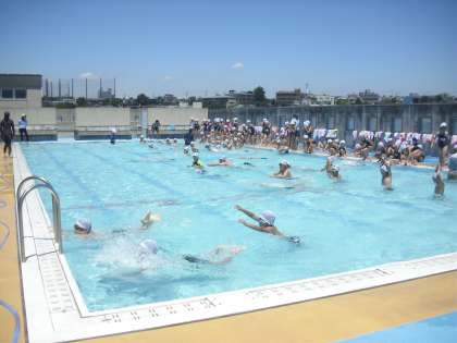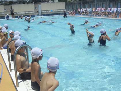 連日の厳しい暑さの中、夏休みの水泳教室が始まりました。