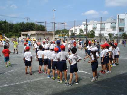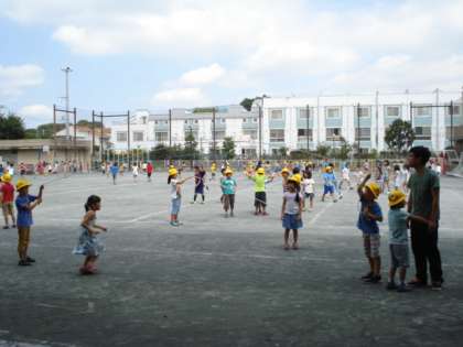 晴天のもと、校庭や体育館、屋上で30分間たっぷり遊びました。