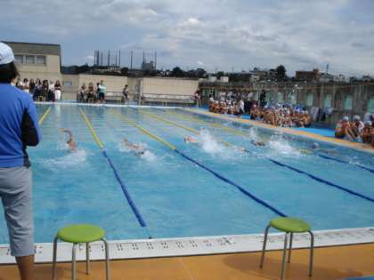 先週は天気が悪くて、なかなか実施できなかった水泳記録会ですが、本日やっと実施することができました。