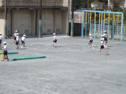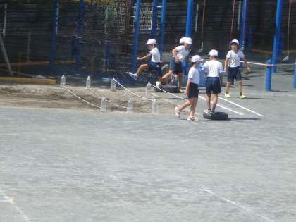 4年生が、工夫した場で走り幅跳びの学習を行っていたので、思わずカメラを向けました。