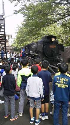 歴史民族資料館に着きました。SLを見学したり、乗車したりしました。子どもたちはSLの迫力に感動しています。