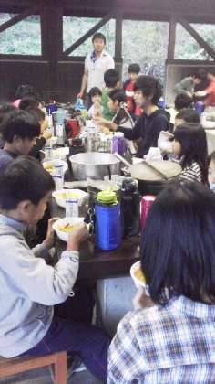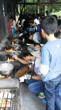 飯ごう炊さん、担当毎に頑張りました。どの班も、上手にできました。みんなよく食べて元気です。