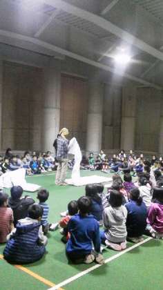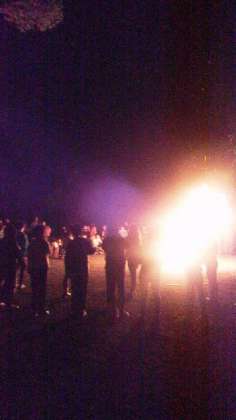 そのあと、屋根付広場でふとんのしき方やシーツのかけ方の説明を受け、9時半に消灯です。