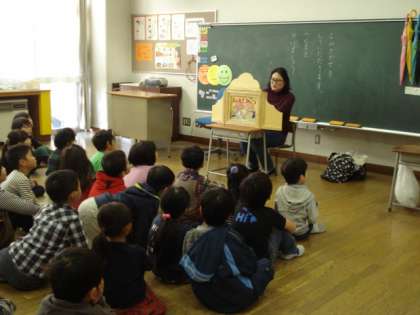 紙芝居や絵本のお話を、子どもたちは楽しそうに聞いていました。