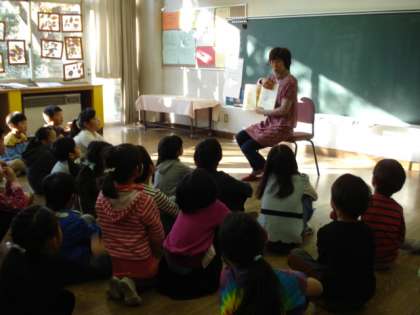 今朝は、低学年の各クラスにモーニングスープの方々が読み聞かせに入ってくださいました。