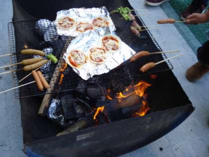 ソーセージ、ジャガイモ、焼きリンゴ、ピザなど、いろいろなものを焼きました。