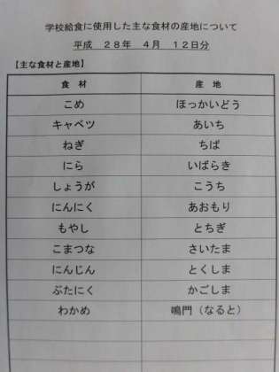 4月12日の給食食材産地