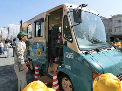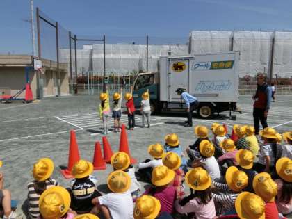 横断歩道の正しい渡り方を学んだり、実際に車に乗って運転席から死角になる場所を確かめたりしました。