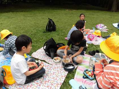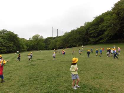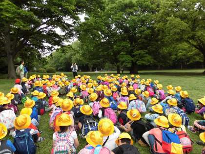 本日、1年生が砧公園に遠足に行ってきました。広い野原でのびのびと遊んだり、おいしいお弁当を食べたりして、たくさんの思い出を作ってきました。