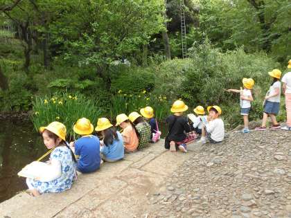 本日1、2時間目1年生が生活科の学習で、岡本公園に春を見つけに出かけました。きれいな色の草花やたけのこ、ちょうちょなどの春を感じさせる植物や生き物を見つけることができました。