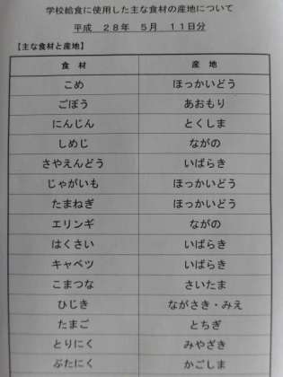 5月11日の給食食材産地