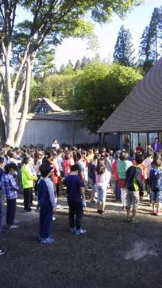 3日目の朝会を行いました。よく眠り、みんな元気です。