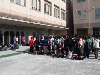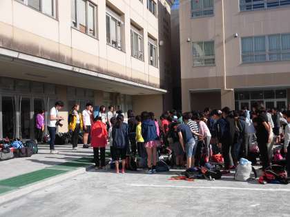 本日16時頃、5年生が川場移動教室から無事学校に帰ってきました。