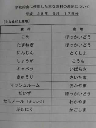 5月17日の給食食材産地