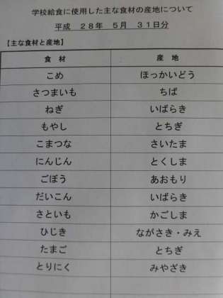 5月31日の給食食材産地